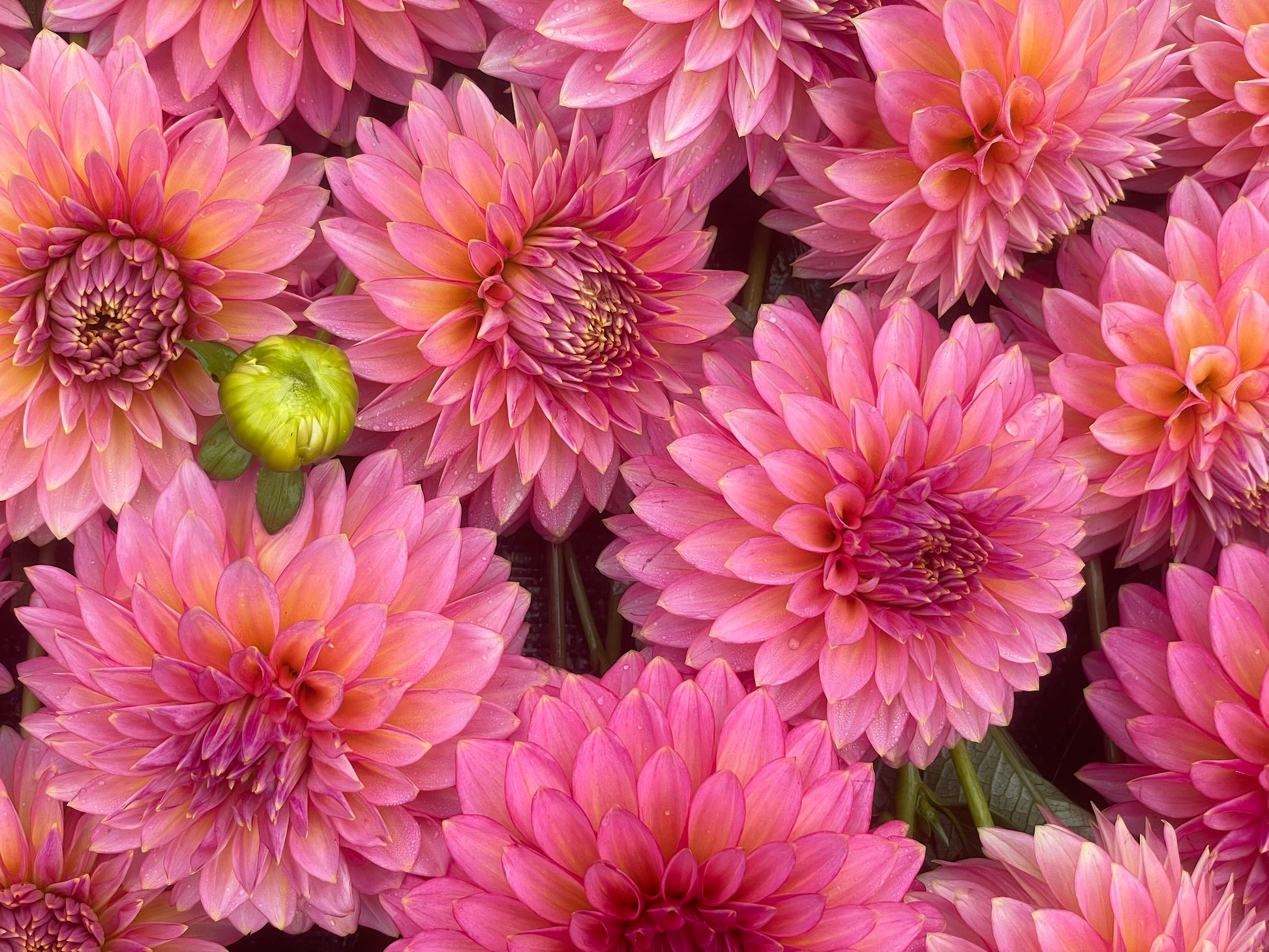 Just stunning! Raspberry & watermelon colouring with gold tips (cooler temps bring out more of the raspberry hue). Everything I want in a dahlia, saturated colour, beautiful form, sturdy plants, solid stems and continuous blooms. For us, this girl is very popular with our customers and staff! This will also be a knockout plant as a stand alone display in any garden.