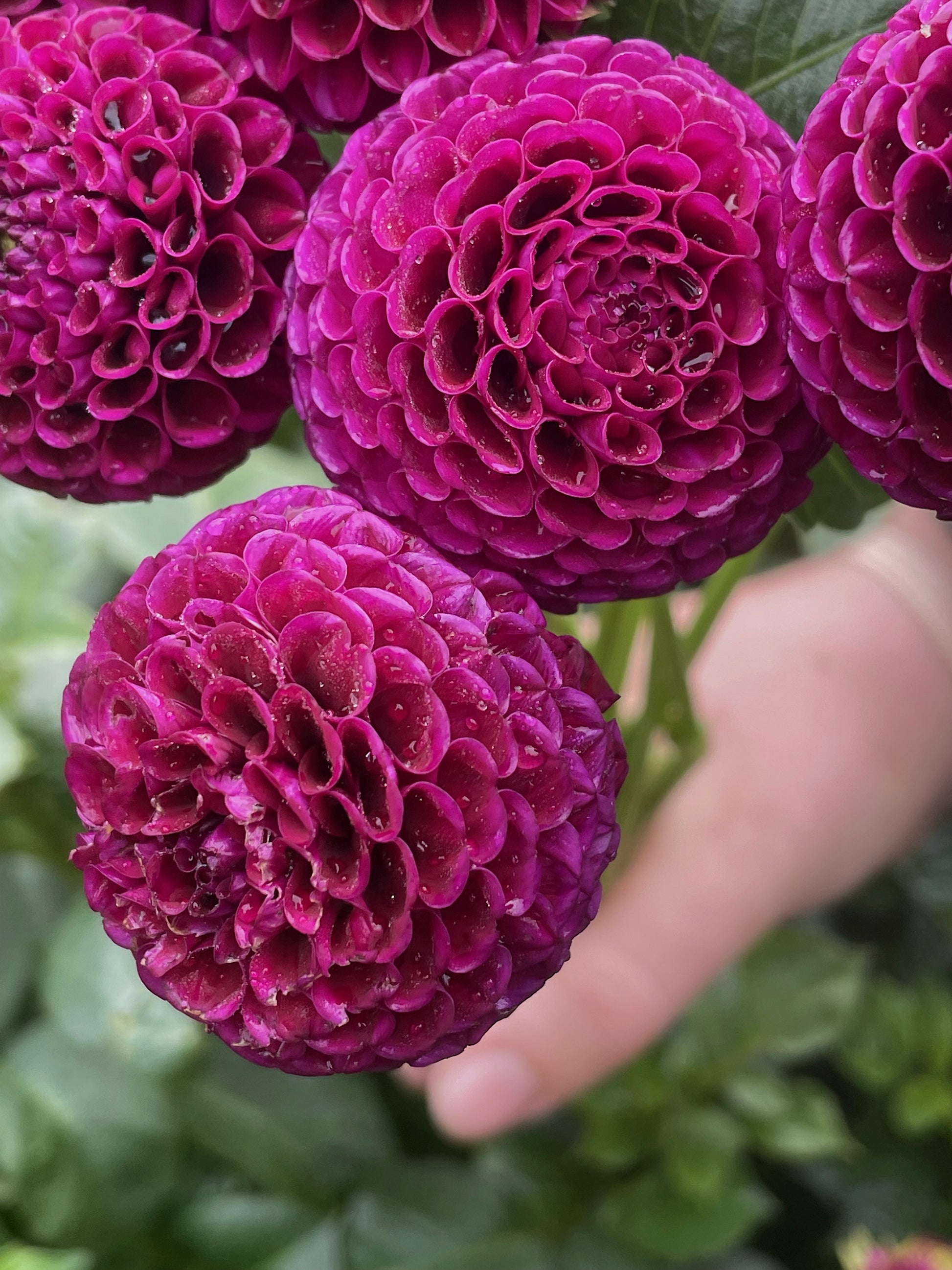 Actually boysenberry colouring. Very sweet and a unique pop of colour. Plants are on the shorter side so cut deep to encourage great stems. Again this is one of those colours that is hard to capture with my iPhone....if you are looking to add a gem stone colour to your Pompon collection then give her a go.